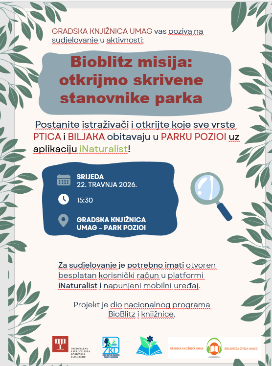 u suradnji s Gradskom knjižnicom Umag pozivamo vas na edukativno-rekreativnu radionicu koja će se održati 22. travnja u 15:30 u sklopu nacionalnog BioBlitz projekta.
