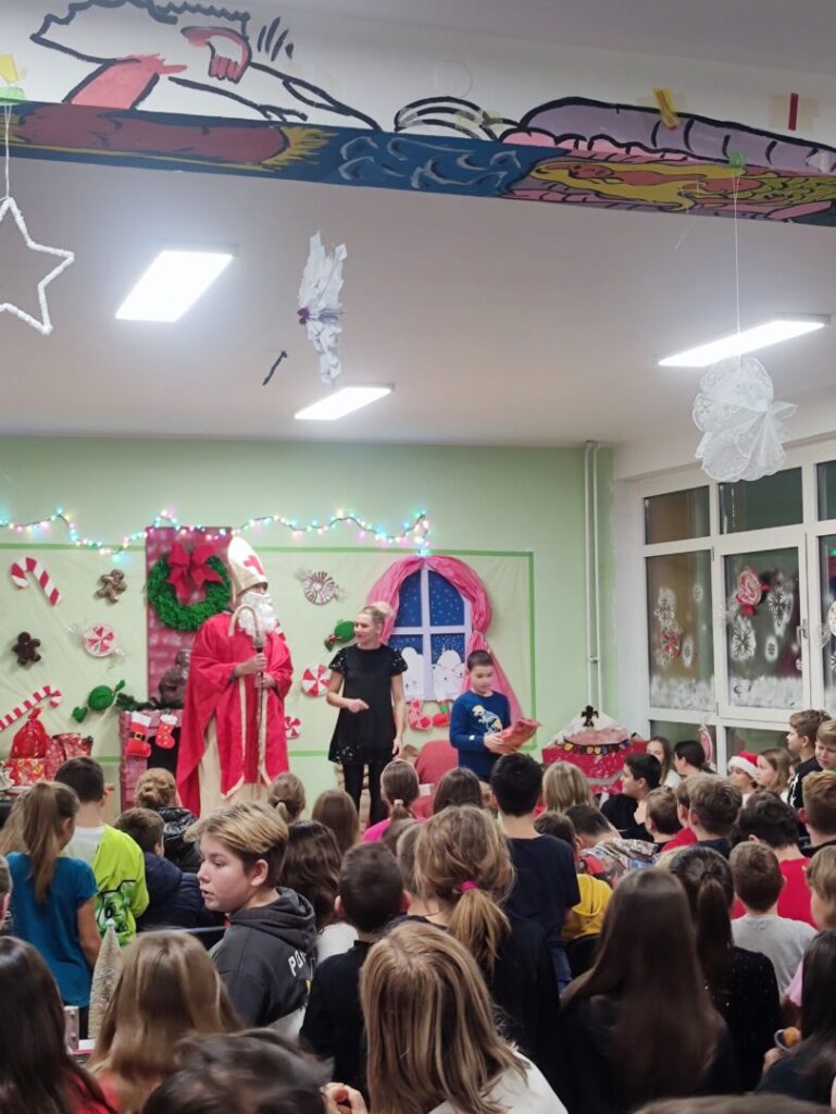 Sveti Nikola je po završetku radionica izvukao 5 sretnih brojeva te svim učenicima i posjetiteljima podijelio slatke poklone. Tko je želio, mogao se fotografirati sa Svetim Nikolom, a stariji učenici su s njim napravili sebić (selfie) kao najveći obožavatelji. Posebno nas je dirnuo govor Svetog Nikole koji je djeci poručio da je ovo krasno druženje dar učitelja, darovali su svoje vrijeme kako si sve za njih organizirali i pripremili.