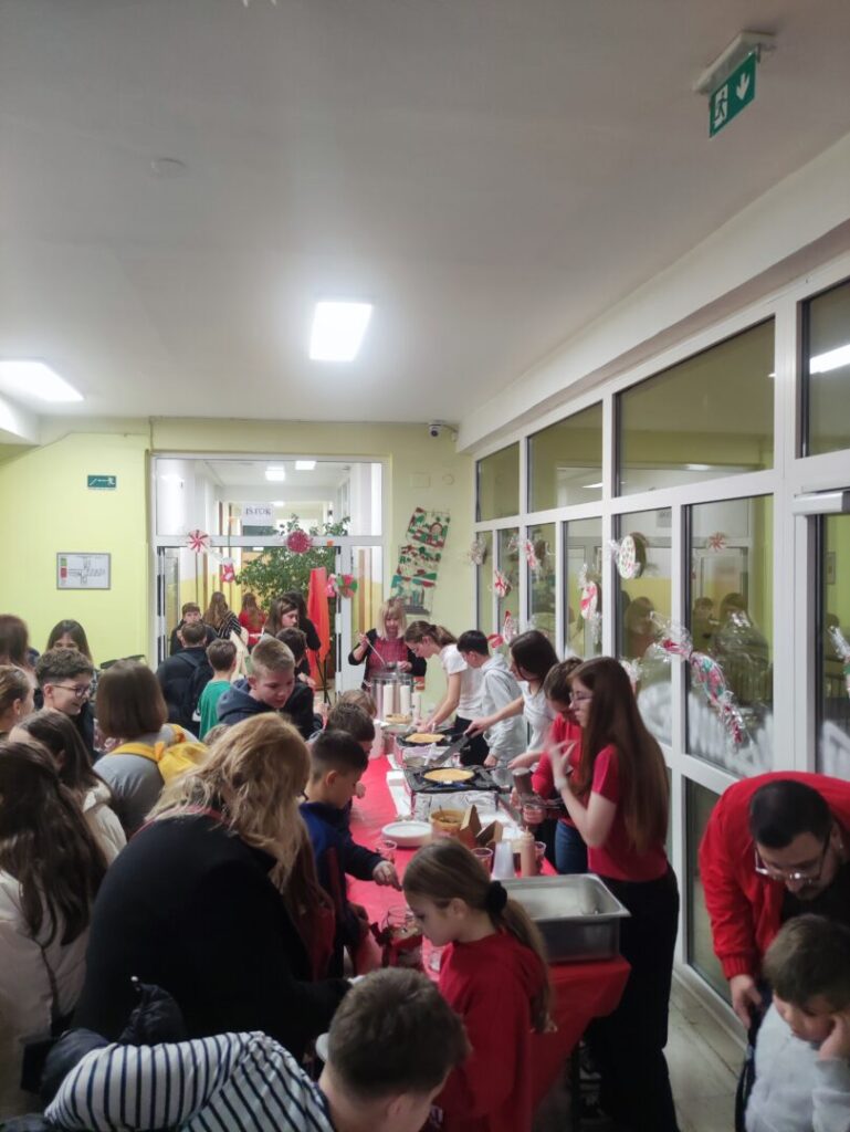 Svi posjetitelji mogli su se okrijepiti uz palačinke i čaj koji su za njih pripremali kuhari, učitelji i učenici. S učenicima je bila učiteljica Mirela Jovičić, a za fritule moramo zahvaliti mami 2. a razreda.