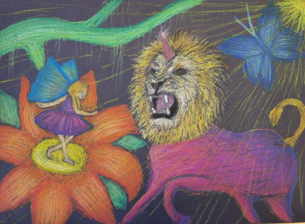 Zadatak je bio u tehnici pastela prikazati nadrealistički sa, pritom upotrijebiti tonsku modelaciju, izraziti teksture i toplo-hladni kontrast.